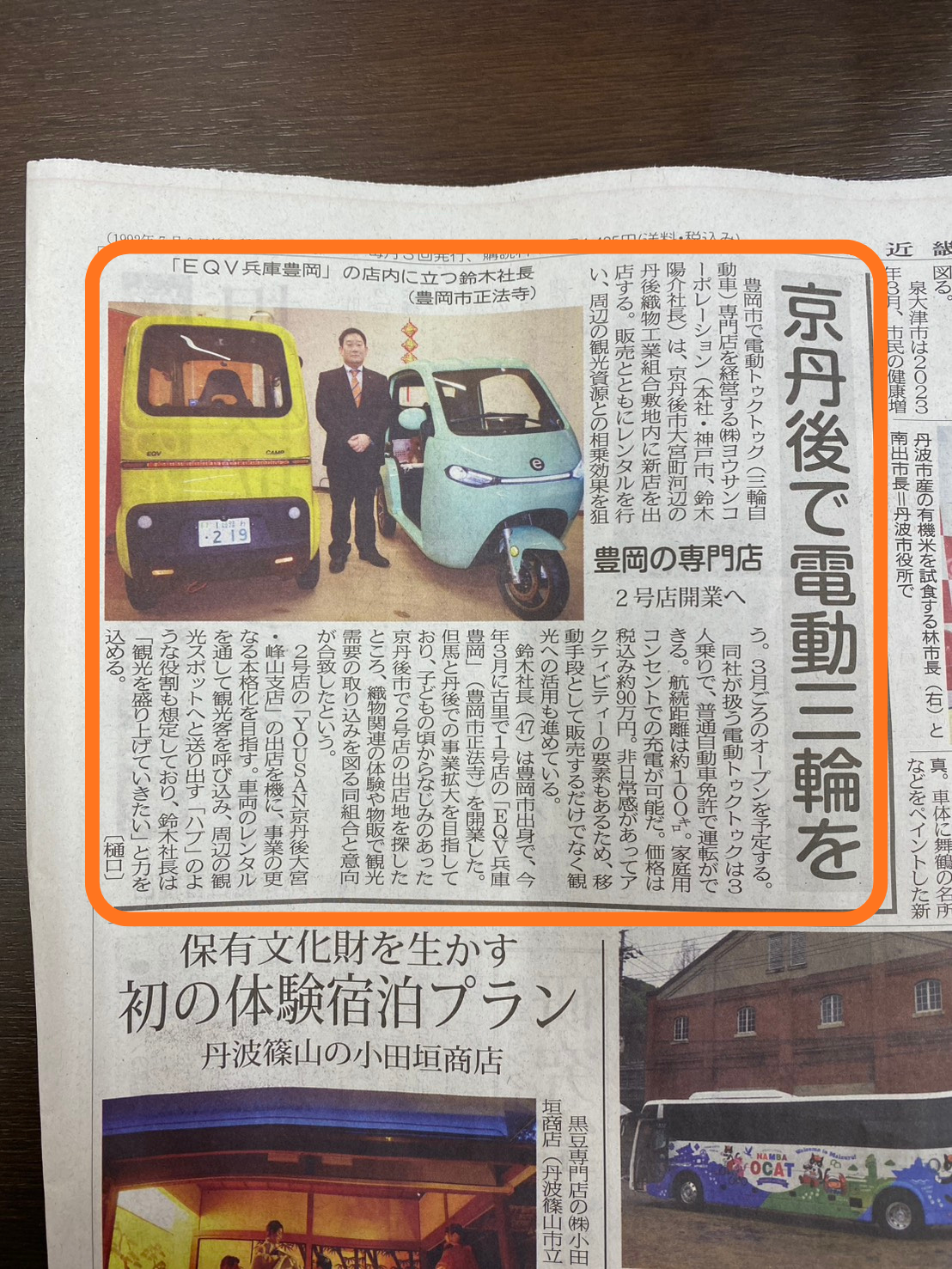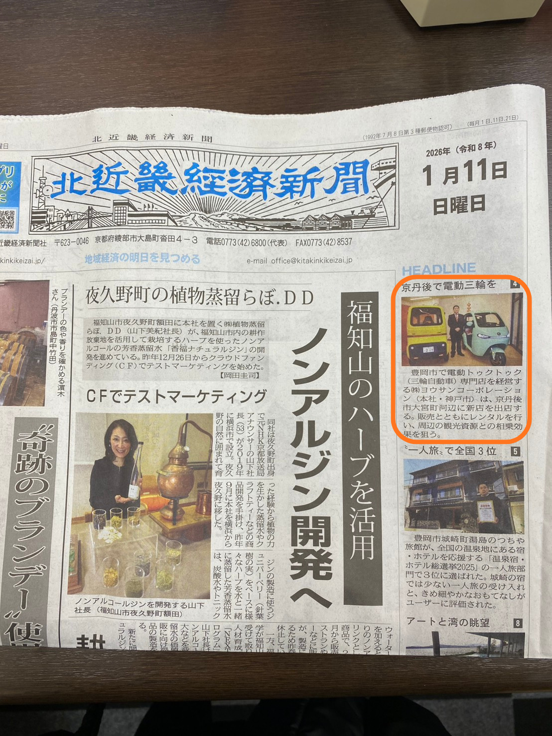 2026年1月11日発行の「北近畿経済新聞」にて、弊社(株式会社ヨウサンコーポレーション)の電動トゥクトゥク事業が紹介されました!